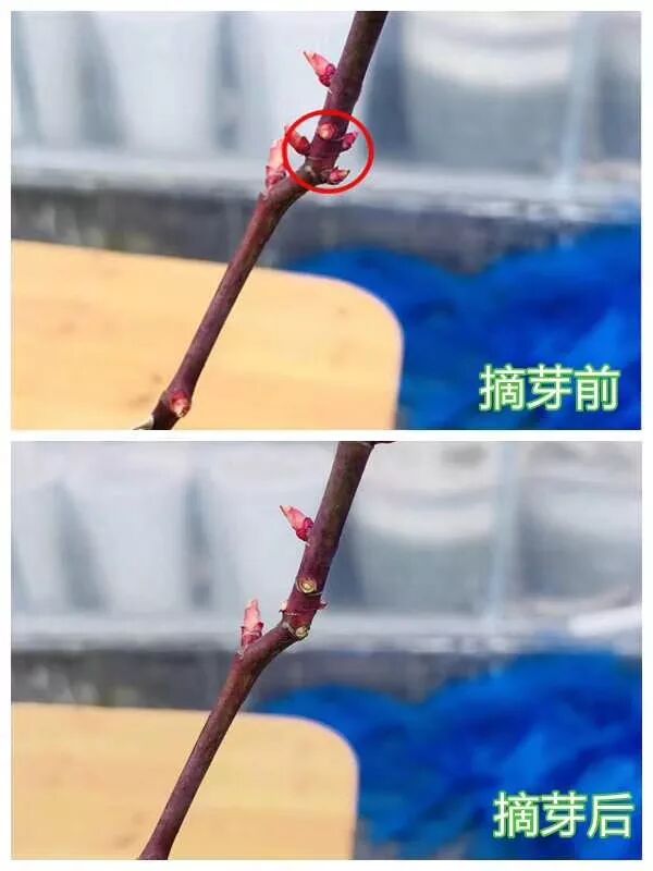若是枝條上生長(zhǎng)的新芽過(guò)密,須作適宜的摘芽工作。間隔取好,留下壯芽,將多的芽和成長(zhǎng)較弱的芽全部摘下。